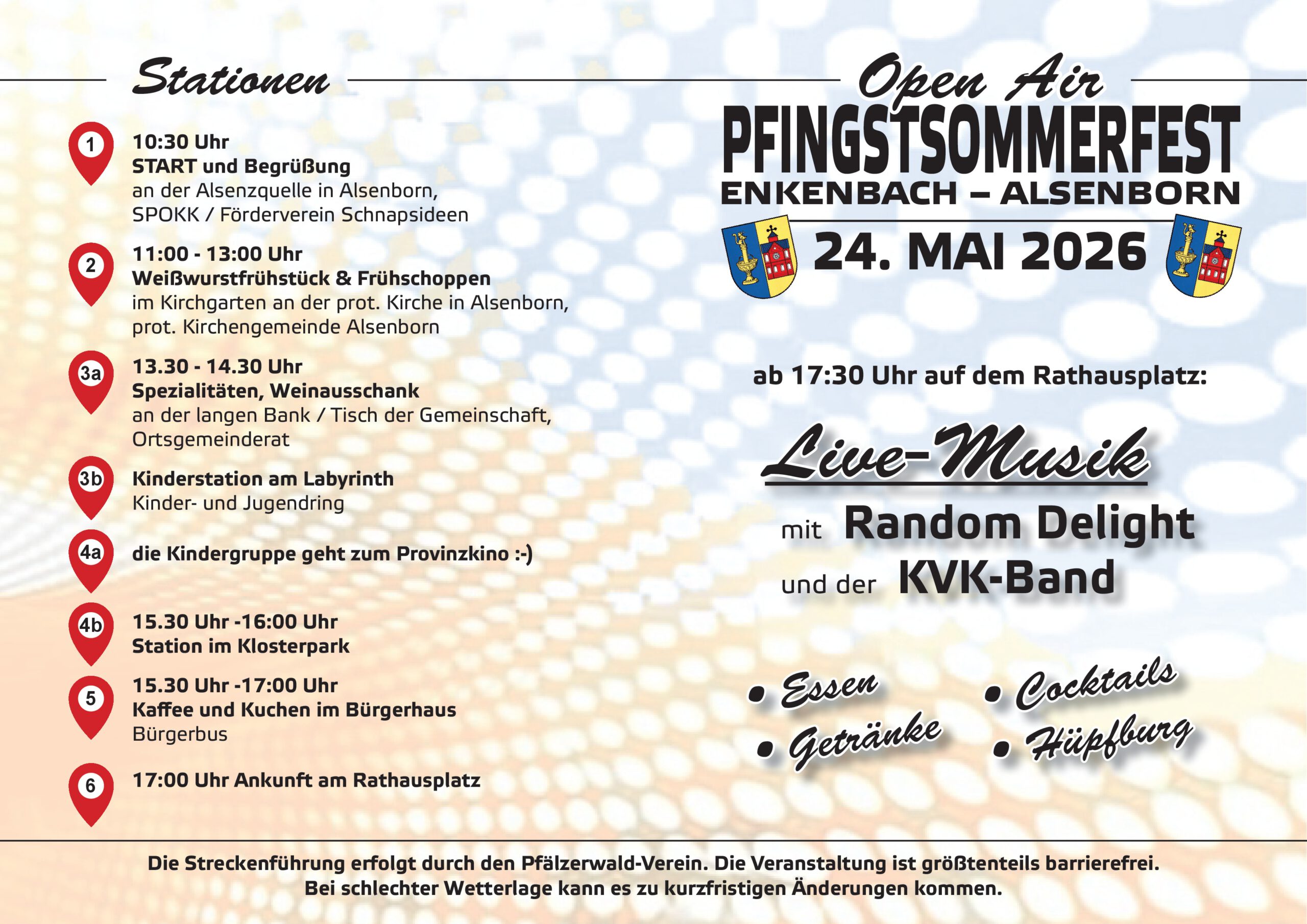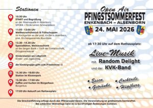 Wir freuen uns sehr auch in diesem Jahr, wieder in Kooperation mit der Ortsgemeinde Enkenbach-Alsenborn, ein PFINGSTSOMMERFEST anbieten zu können!!!